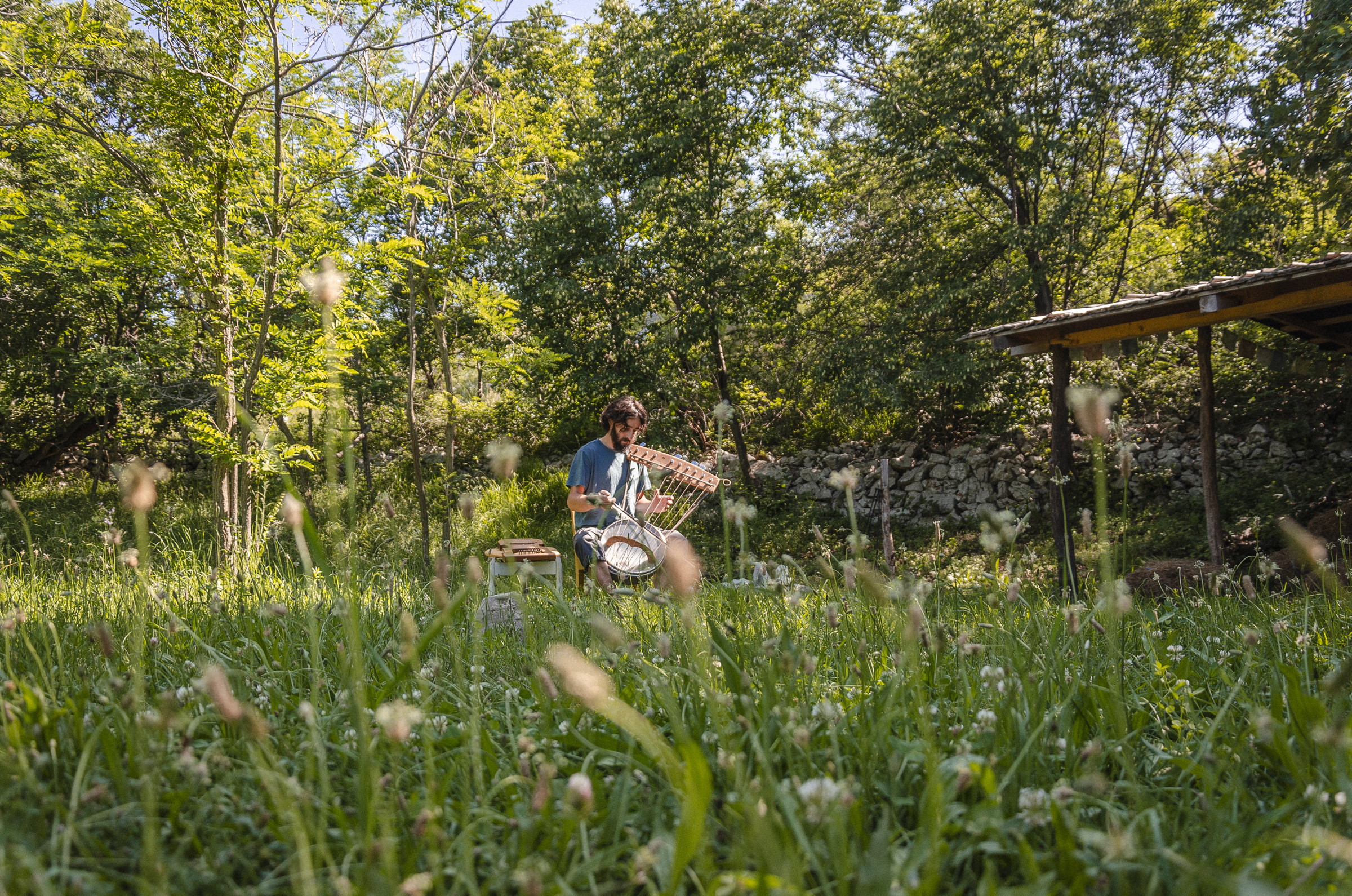 Prav ta pristna živost njegove glasbe - spoj ljudskih godb in minimalističnih vzorcev - se na pričujočem albumu zlije še s tretjim elementom: živo naravo samo. Spontana dramaturgija ptic, konjev, žab, čričkov, oddaljenega vlaka in bližajoče se nevihte postane navdih za improvizirane napeve in hkrati enakovreden del glasbe same. Zvoki strun se stkejo z zvoki iz okolja, narava z izvajalcem.